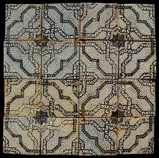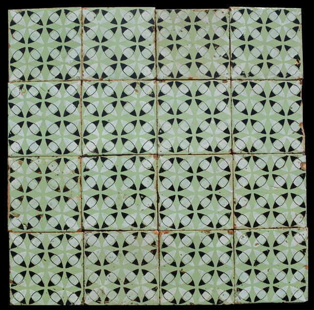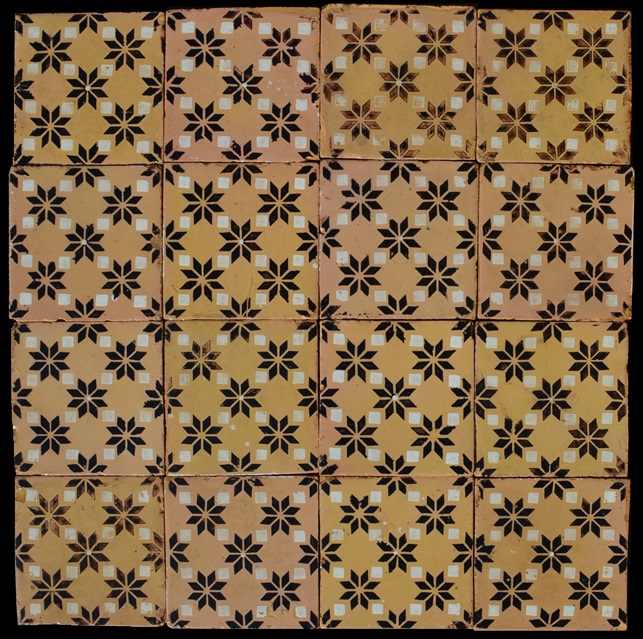 Cod.: 635 Manifattura: Fratelli Tajani Origine: Vietri sul Mare - Periodo: 800 Misure: cm 20x20x2 Quantità: 251 fasce - 236 centrali - 56 angoli Quantità disponibile: 544 pz